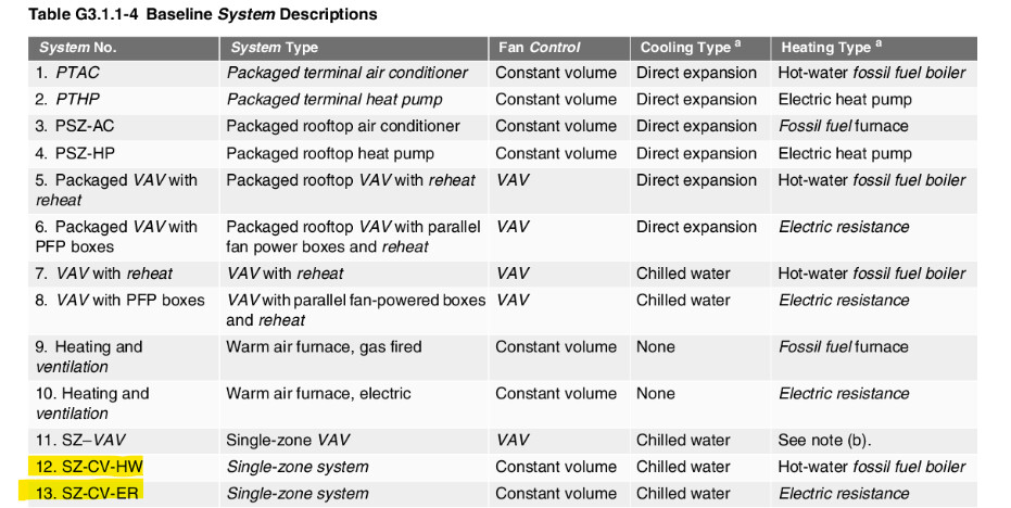 I am trying to map System 12 and System 13 from ASHRAE 90.1-2019 Appendix G to systems in Honeybee and am having a hard time finding an equivalent system. Am I overlooking one of the options or does a constant volume single zone system not exist in the Honeybee templates?