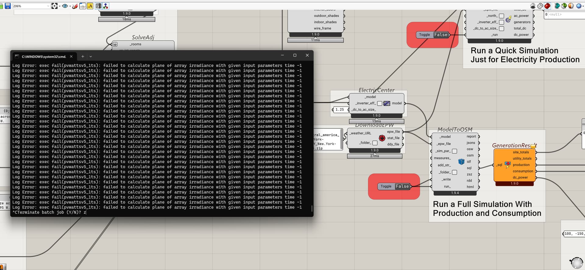 When doing an energyplus simulation with facade as PV panels, I noticed that if I include one facade into PV-shadings, the EnergyPlus simulation breaks by keep saying: