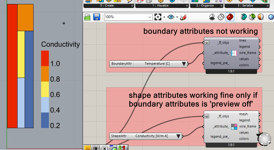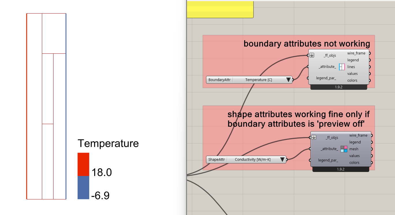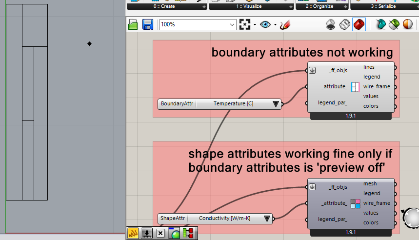 I can’t seem to make FF Color Boundary Attributes work in the Rhino viewport, in fact just having this component preview on, it makes FF Color Shapes Attributes disappear from the Rhino preview. However, it’s working under the hood because I can get the attributes from the component’s outputs.