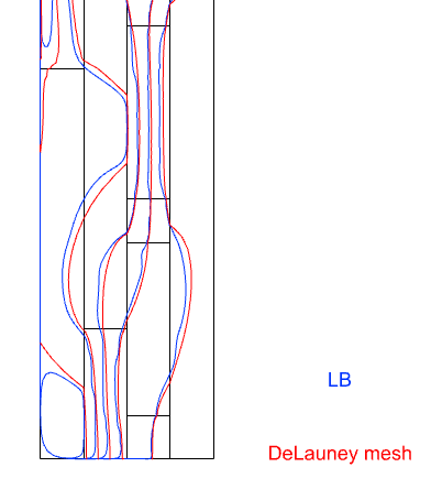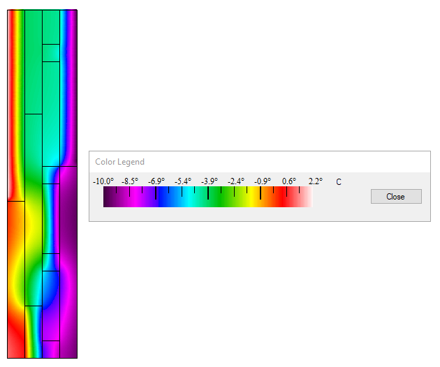 After finally getting things working and seeing the simulation results I started playing around with the legend parameters to see if I could get the whole rainbow from the thermal palette through my materials, but it seems like the mesh is a little coarse and the gradients jump from one color to another, while skipping the intermediate colors (see the bottom side where it jumps from black to green without going through purple-blues). This makes it harder to visualize what is happening throughout the materials. Is there any way to further refine the mesh before running the simulation?