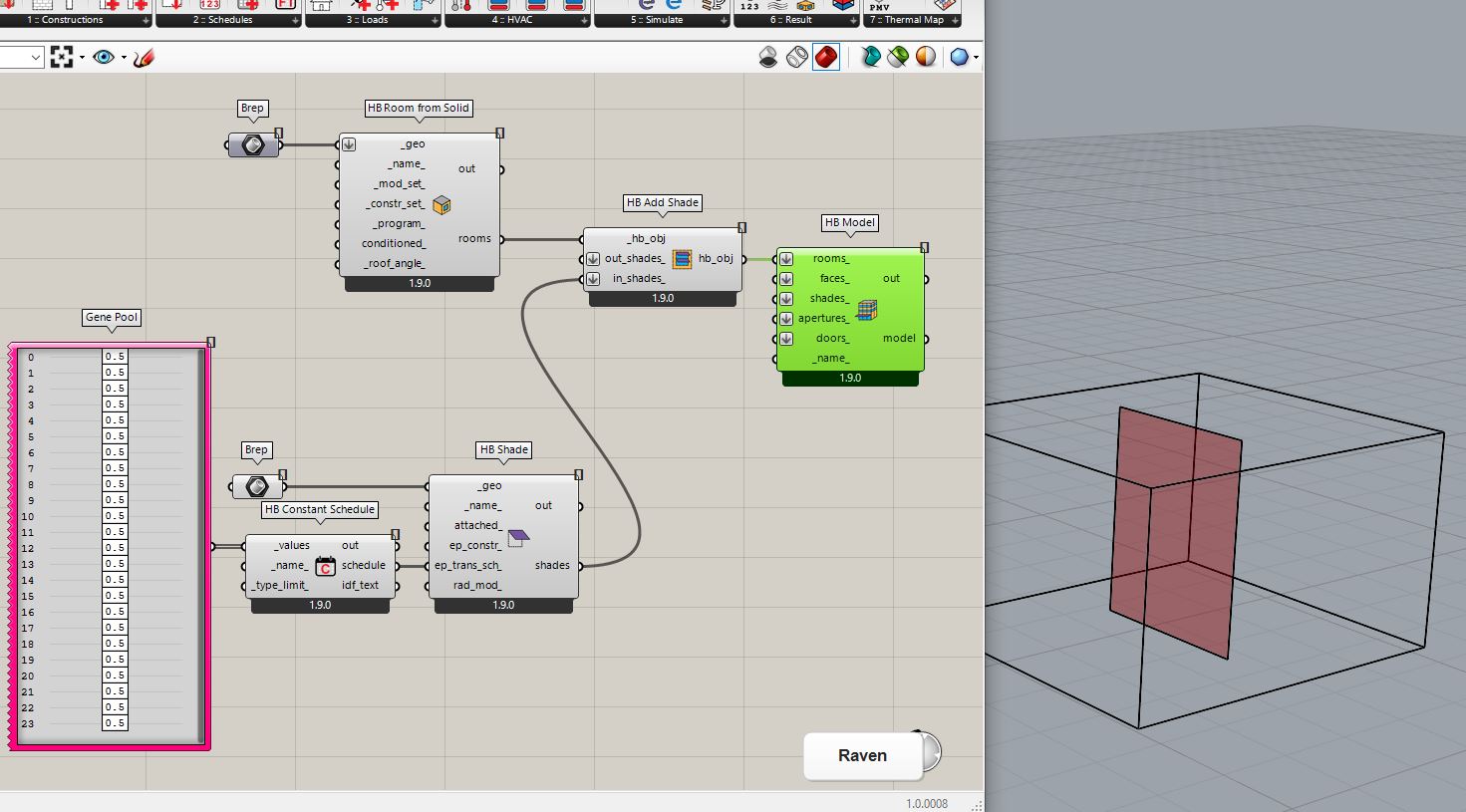 this is a smart solution. we have defined a shade and only made a transparent material for only energy assessment. when we defined transmittance by 0.5 (fixed for whole year) means it can transfer half solar (material is supposed by default and you can change it by HB shade material). on other hand you can define a simple glass material (tv 0.5) for daylight simulation at the same time if you need.