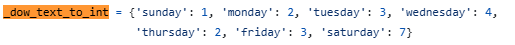 I checked the github repository for the nested functions and I found that in the _dow_test_to_int function, indeed Thursday and Friday is made into the same integers as Monday and Tuesday (2 & 3). I am guessing this a bug, or maybe I am missing something?