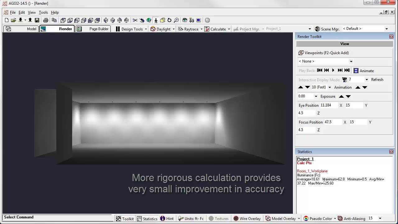 With Dialux, one only has two simplistic options: standard and fast (whatever they mean!).