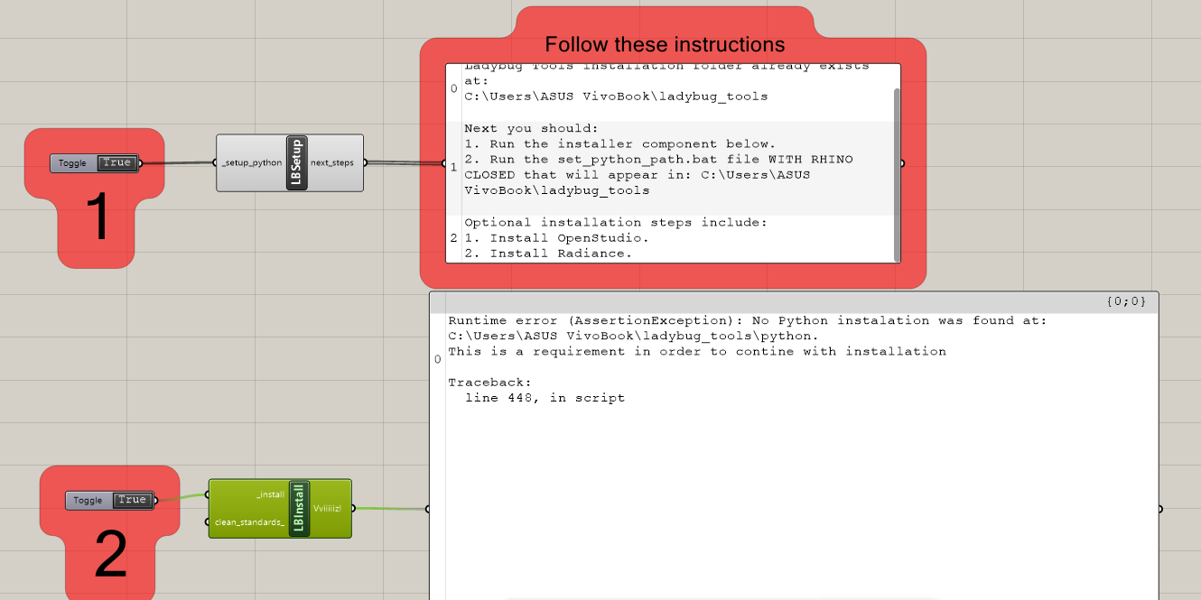thanks for your guidance! Removing the python folder and re-running the first component actually worked and LB/HB is now installed.