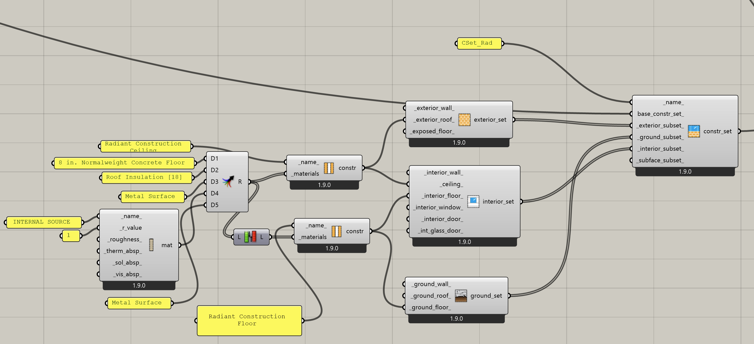 Thank you for responding, @MingboPeng. I could use your script without any errors. But, I am facing the same error again when I try to specify the ‘Radiant Surface Type’ to be Floors instead of Ceilings. I tried making this change along with changing the Internal Source Component (exterior floor instead of exterior roof), and without changing Internal Source Component. In both trials, it shows the same previous error. Also, this building has only radiant Heating and no cooling system. I was planning to model this by changing the High Air Temperature to 100 or some very high number so that cooling never kick off in the simulation. I am not able to attach GH file or a screenshot as a new user on this platform. Can you please help to solve this? Thank you very much in advance!