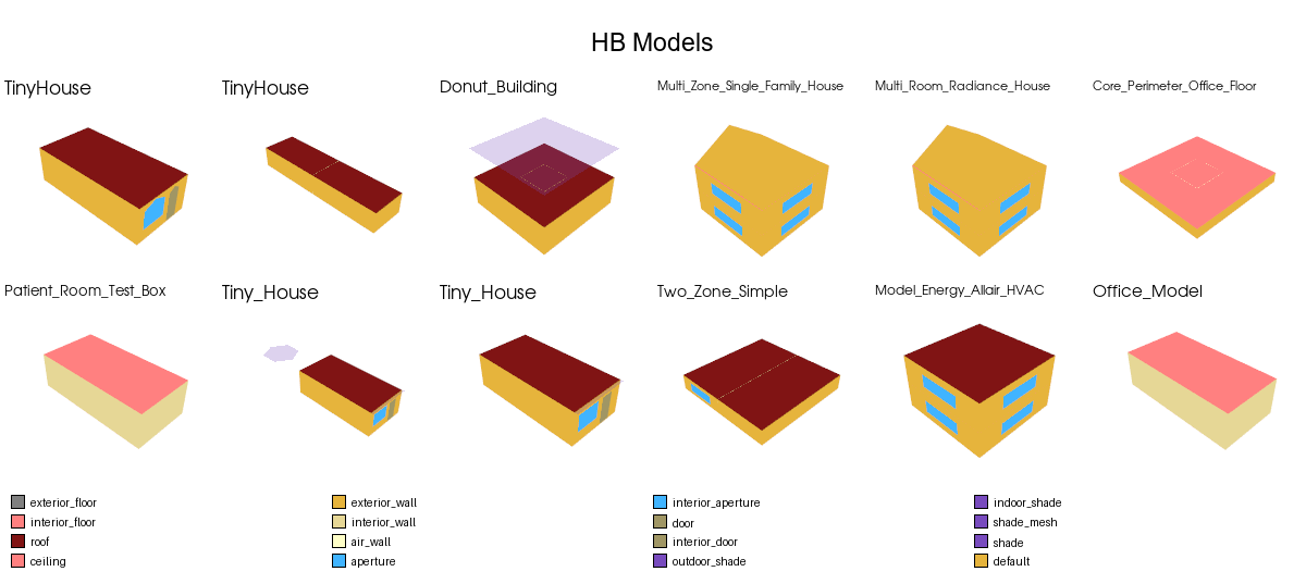 Ladybug tools can be used for really awesome things, also outside of Grasshopper or Revit. I guess I am not the first person experimenting with Honeybee in Jupyter Notebooks. What I was missing for some time was a universal plotting function for the Honeybee models, well-integrated into the interactive Python environment. So I made one. Actually I made two - one to interactively visualize a single model (with Plotly) and another, to compare many models in a grid (with PyVista).