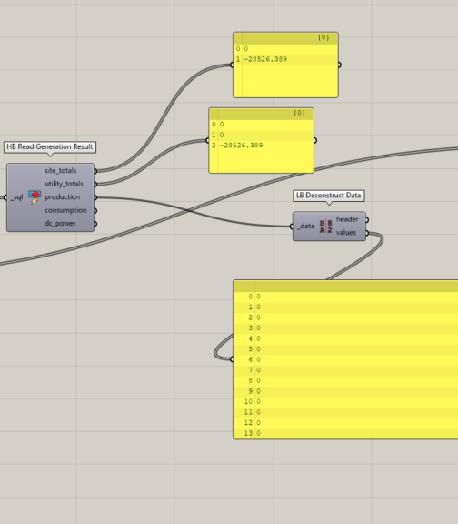 I attempted to use the HB Load gbXML OSM IDF component to aggregate all generated OSM files. It appears that the shades are recognized only as shading surfaces rather than PV shades, as the electricity generation output remains empty when using HB Read Generation Results.