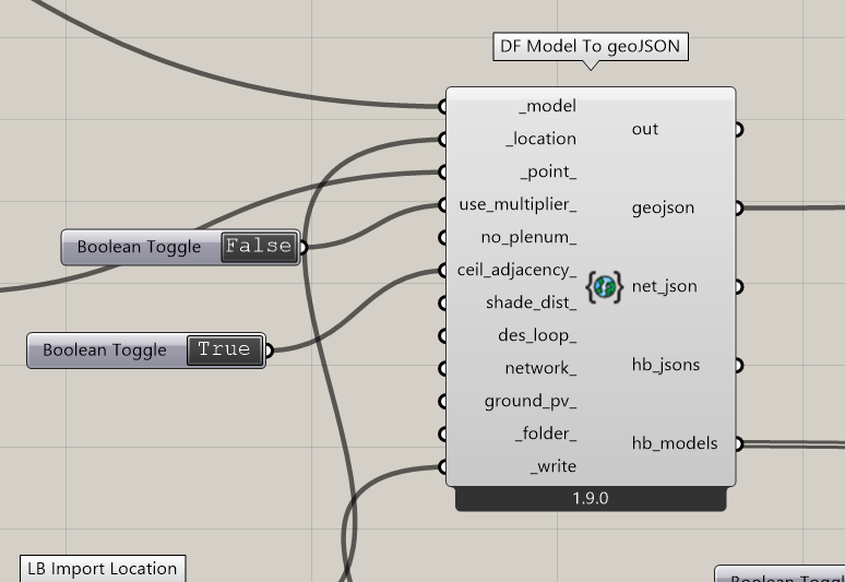 The model output from HB Load gbXML OSM IDF can be connected to DF Model to geoJSON, but it still lacks interpretation of PV shading surfaces. (I also noticed a slight discrepancy between the EUI results from URBANopt via Dragonfly and those from OpenStudio via Honeybee.) The internalized model is attached for your reference.