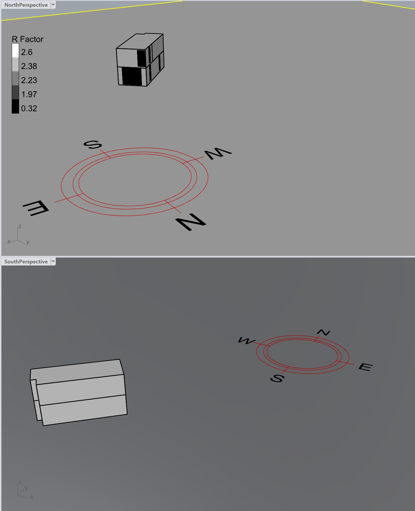 I am looking to have two named viewports with two different representations of the building. I can set the legends to turn on / off in the different windows, but the shading of the surfaces of the HB model appears in both windows even when the viewport_ input is carefully specified.