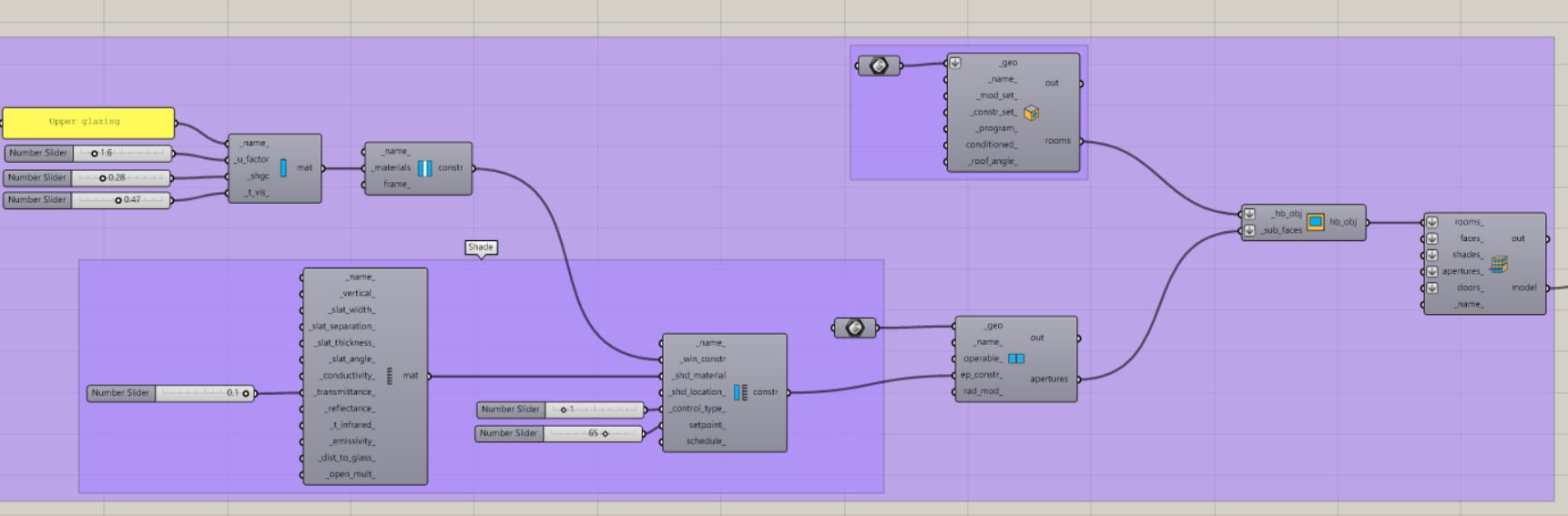 To define the shadings in the Daylight workflow, you need to use the HB Shade and HB add shade components in the modeling algorithm.