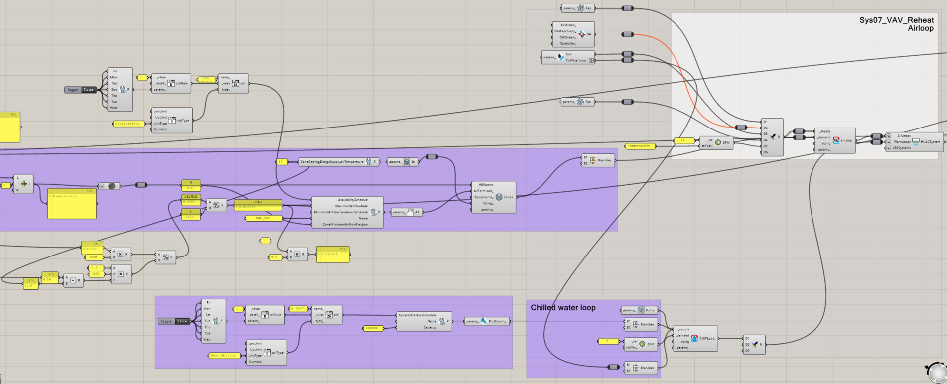 I’ve entered 10,000 W of equipment heat as the internal load, and calculated and entered the VAV supply air temperature (fixed at 16°C) and airflow rate required to handle that load.