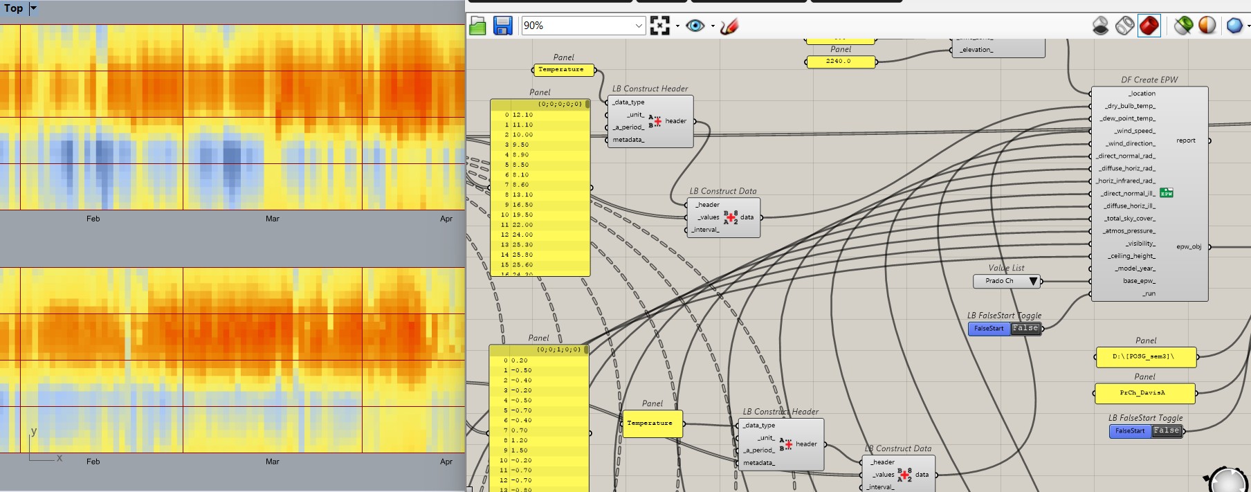 This is the farest I can get in the process…if I just use LB Construct Data without header, the error is that the list is a string. I also tried to convert string (lists) to number (with number and expression) but still indicates me an error.