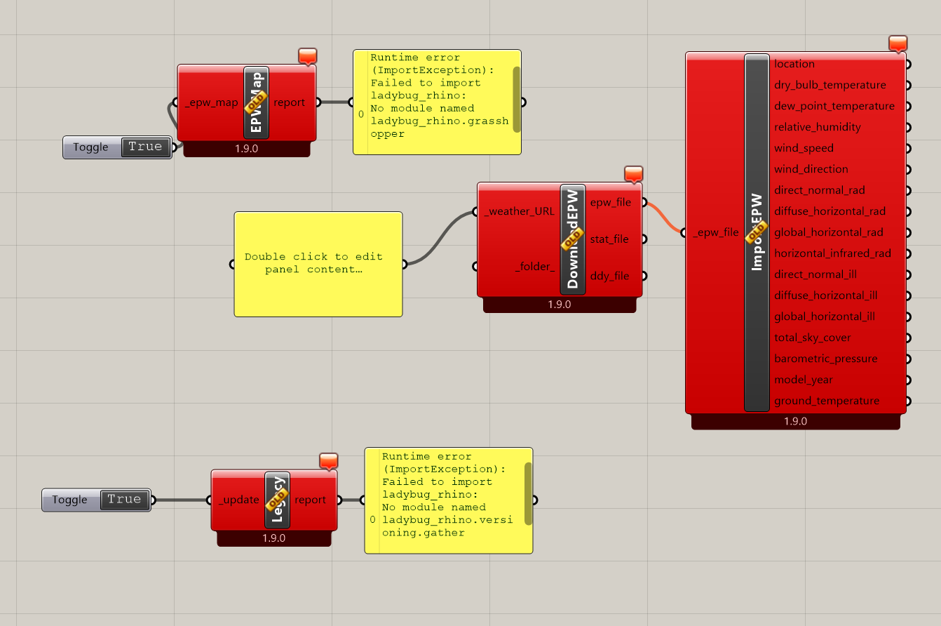I am currently trying to do a solar radiation study but I noticed that every node has an OLD label. LB legacy updater is also labeled old, and the EPW map does not open without looking it up myself.